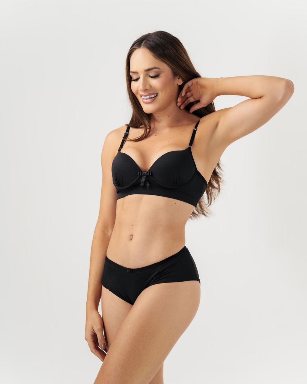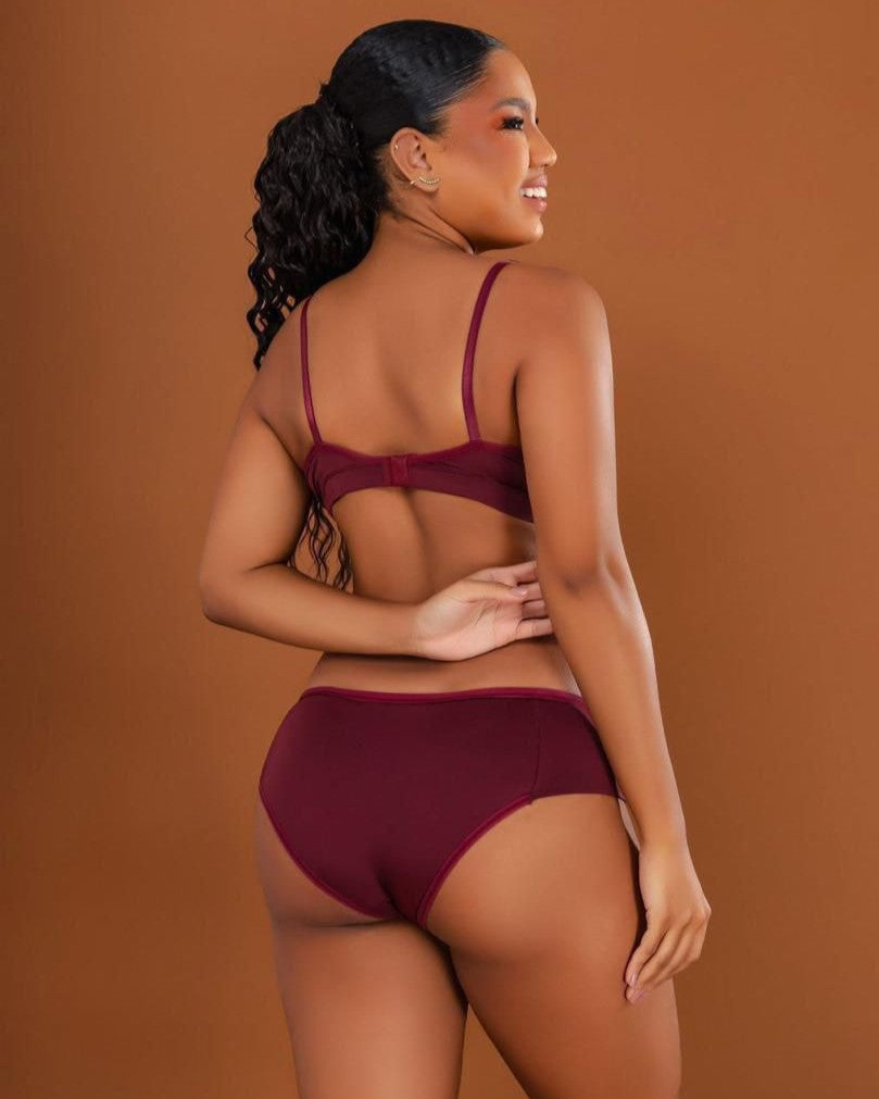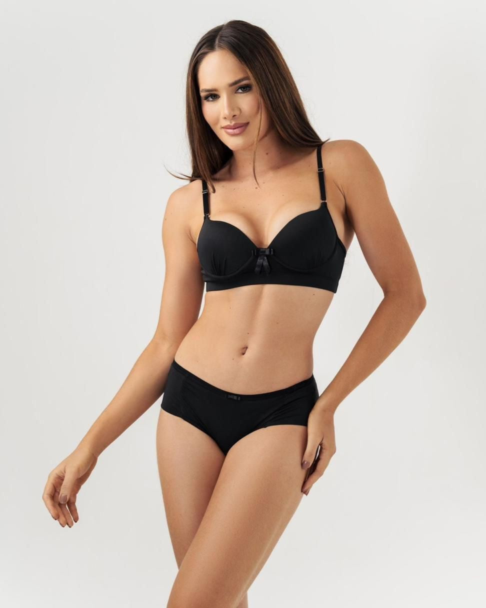 Este conjunto de lingerie é a combinação perfeita de conforto e elegância. Com sutiã de aro e enchimento moldado, proporciona excelente suporte e realça o decote com um toque delicado. Acompanhado por cueca normal para quem prefere maior cobertura. Um modelo versátil, ideal para o dia a dia, que valoriza a silhueta e oferece o máximo de bem-estar e estilo.