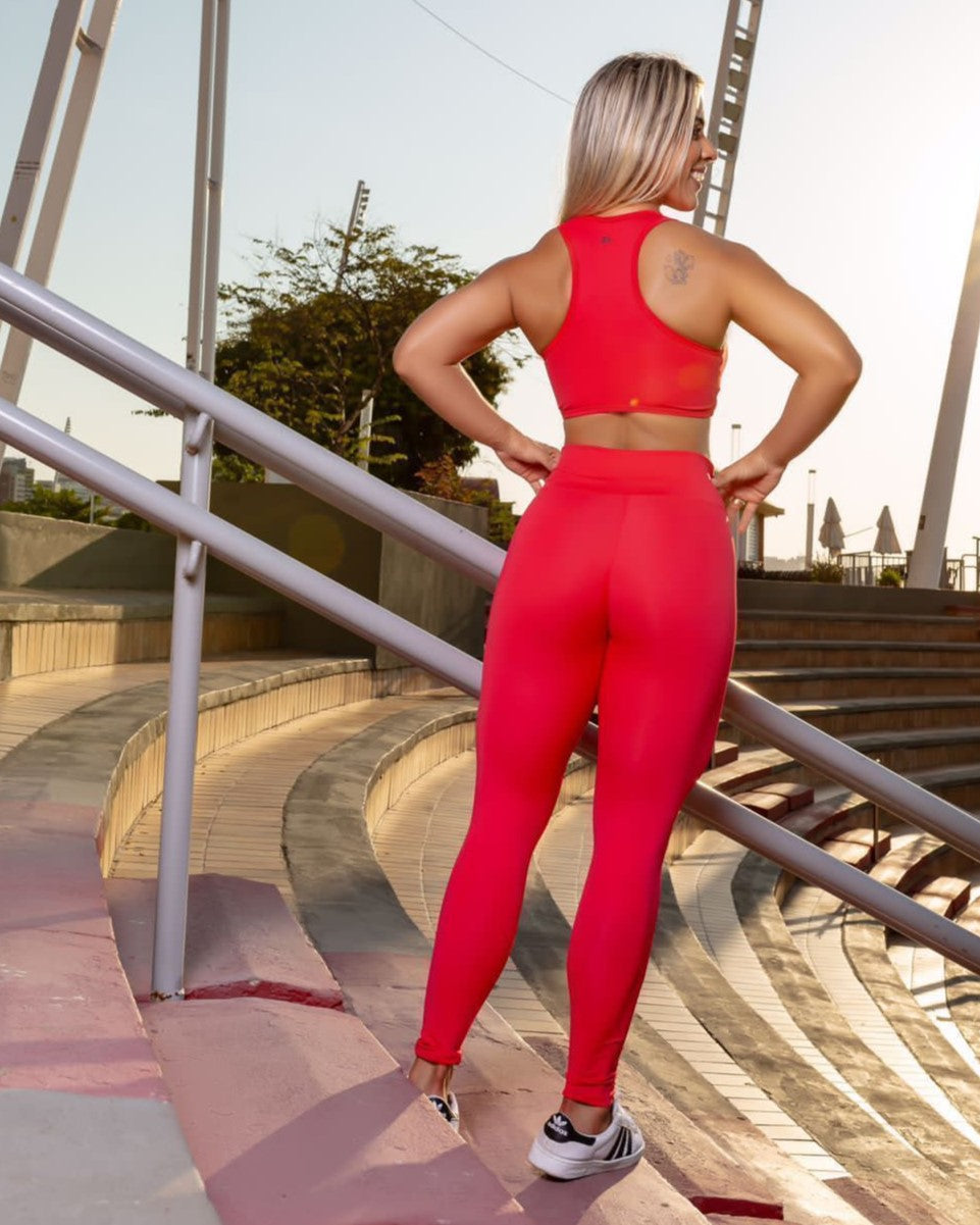 Apresentamos o conjunto de treino Fabi, pensado para quem valoriza conforto e estilo em todas as ocasiões! Com proteção UV+ para maior segurança ao ar livre, o top sem bojo com costa nadadora permite uma amplitude total dos movimentos. A legging básica com pala alta proporciona um ajuste perfeito e suporte extra, ideal para um visual elegante e funcional. O conjunto Fabi é a escolha certa para treinos intensos e para o seu dia-a-dia com estilo.