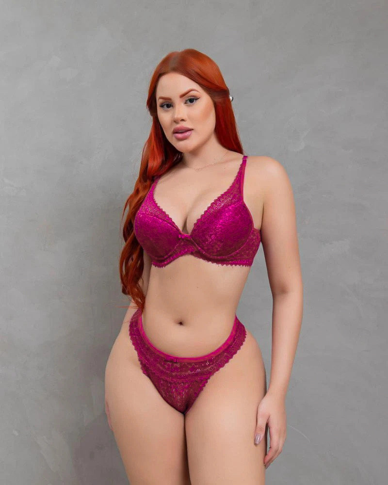 O conjunto de lingerie Lexa combina elegância e sensualidade, ideal para mulheres que procuram sofisticação no dia a dia. Na vibrante cor vermelha, é composto por um soutien com aro e alças ajustáveis, garantindo suporte e um realce natural do busto. A cueca de renda delicada oferece conforto e um toque sedutor. O acabamento em renda floral confere um visual romântico e moderno, perfeito para momentos especiais ou para elevar a autoestima em qualquer ocasião.